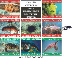 | Nuestra Guia Sumergible de Fauna Marina contiene mas de 50 fotografias de peces, corales, invertebrados y tortugas marinas del Caribe Mexicano, para aquellos buzos que deseen conocer la fauna que se puede apreciar bajo el mar. A continuación ofrecemos algunas paginas. |