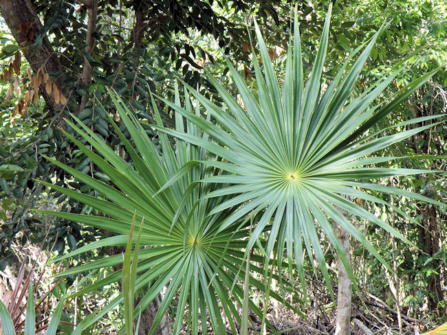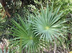 | Native to Florida and the Yucatan Peninsula, it is also known as the Florida Thatch Palm, and was traditionally used for thatch roofs. It is currently protected in Mexico due to its slow growth rate and relatively restricted habitat. Though it may seem locally abundant, it is threatened because it is found primarily on the coastal strip where development is most expansive. Chit Palms have fan shaped leaves that can reach 1 m in diameter, gives white fruit, and can reach 7 meters in height. In Mexico this species is considered Threatened. |