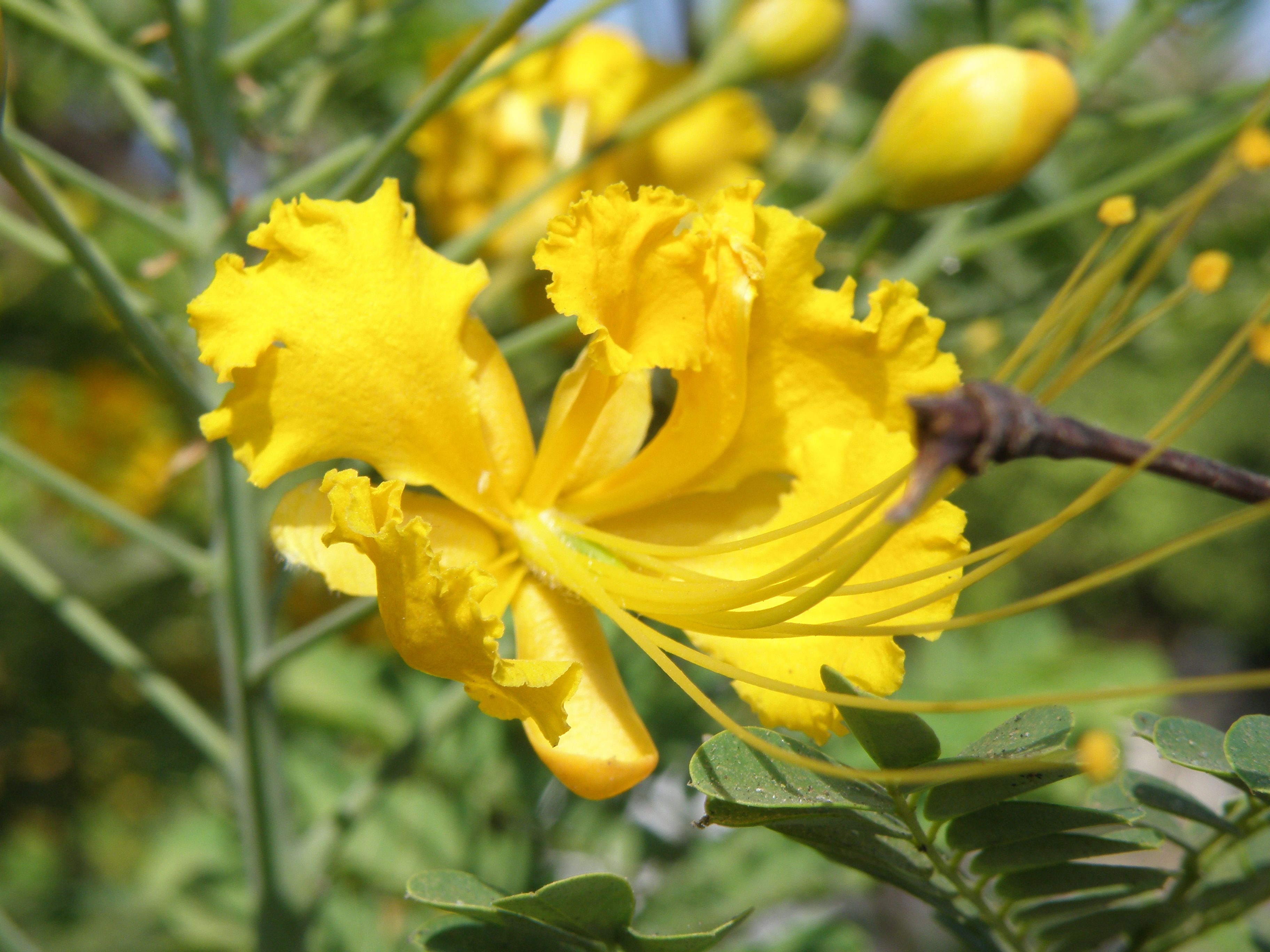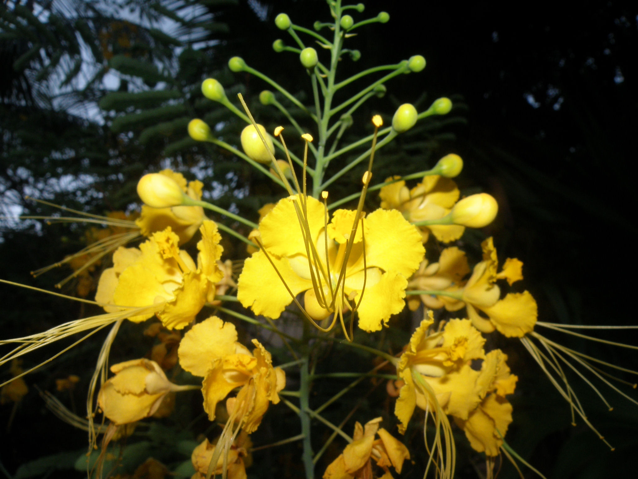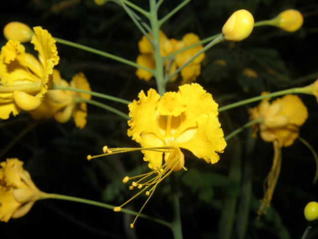 | Este bello árbol es muy parecido al Flamboyán (Delonix regia), pero tan solo alcanza los tres metros de altura. Sus vainas son mucho más pequeñas, alcanzando apenas los 12 cm de longitud. Las flores pueden ser amarillas, rojas, anaranjadas o mixtas. Es nativa de los trópicos Americanos, probablemente del Caribe y es la “Flor Nacional” de Barbados. Flores, hojas, corteza y raiz tienen varios usos en la medicina tradicional, como remedio para la gripe, fiebres, dolores, y enfermedades de la piel, entre otros. |